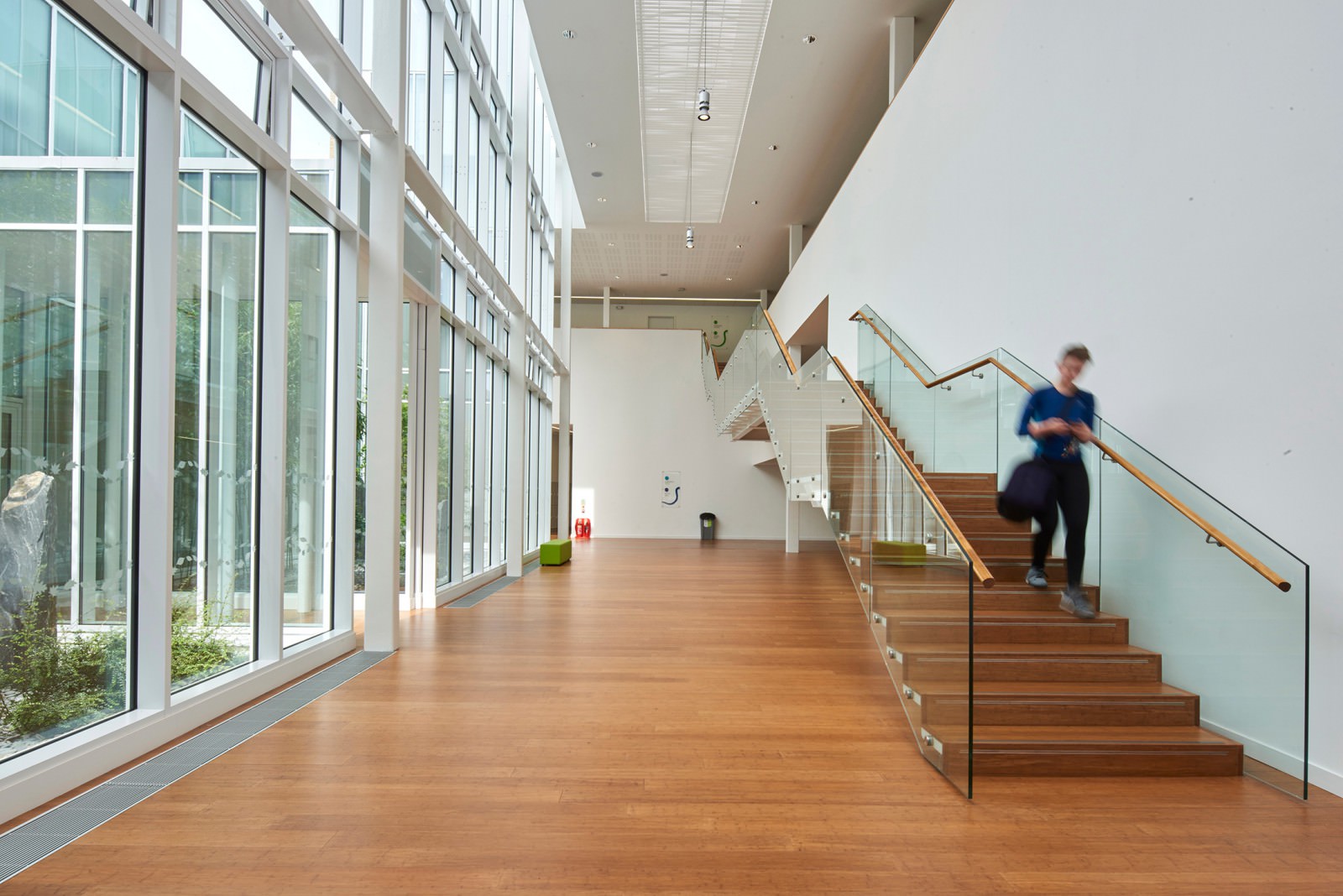 Facilities include a 6 court sports hall, 6 lane 25m pool, a teaching pool, studios, café and lounge area, reception and information points, and a foyer with spaces for art exhibitions, music recitals and local events. The Town House provides a new genealogy unit, arts exhibitions hall and community rooms.