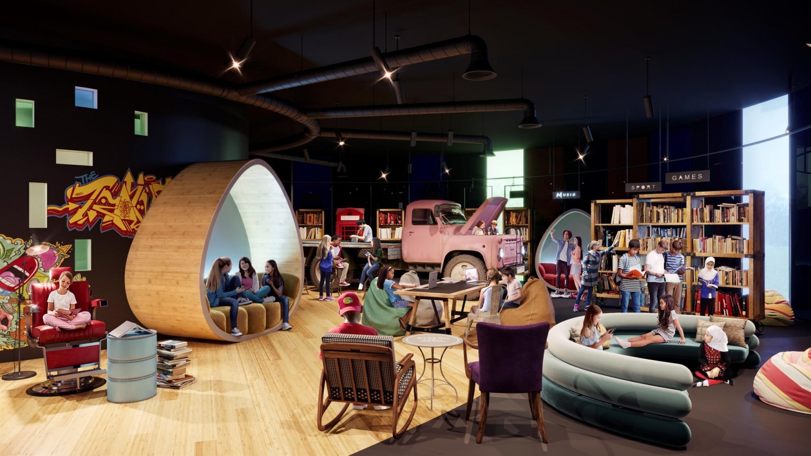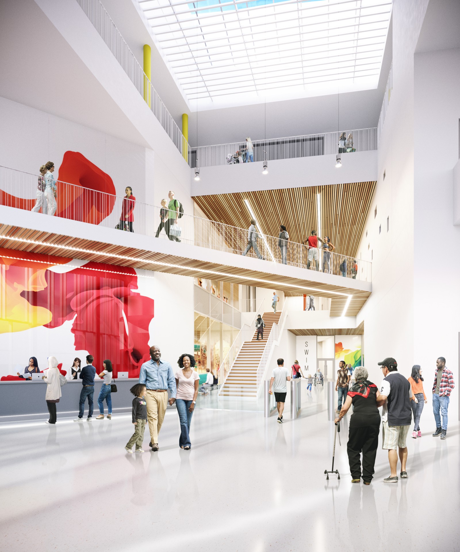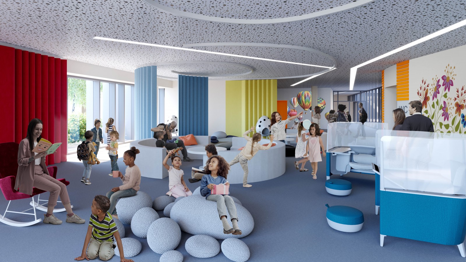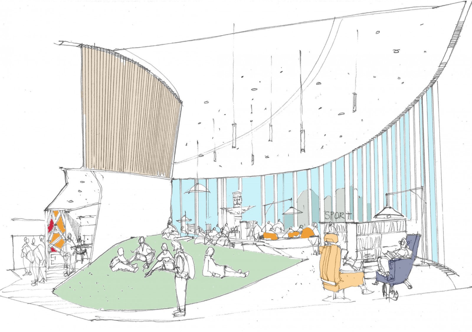 The realised design presents an innovative social hub; an integrated facility bringing together a range of Council community services, including leisure, library and children’s centre, under one roof.  The result is a vibrant, welcoming and inclusive building, embedded within the local community, enhancing and connecting with the adjacent park and wider site, and delivering long-term economic, environmental and social sustainability.