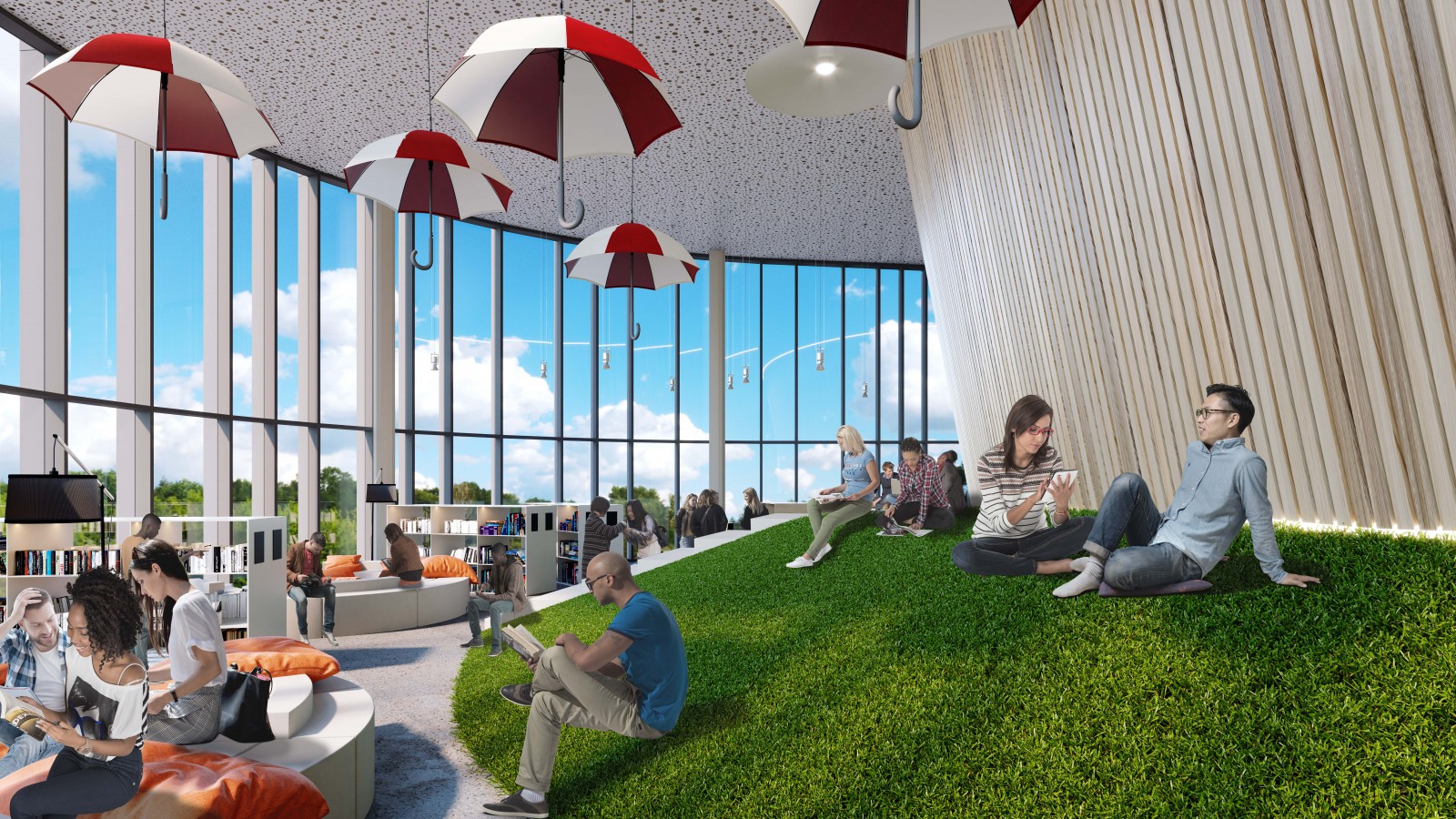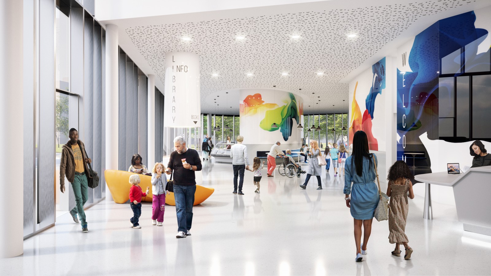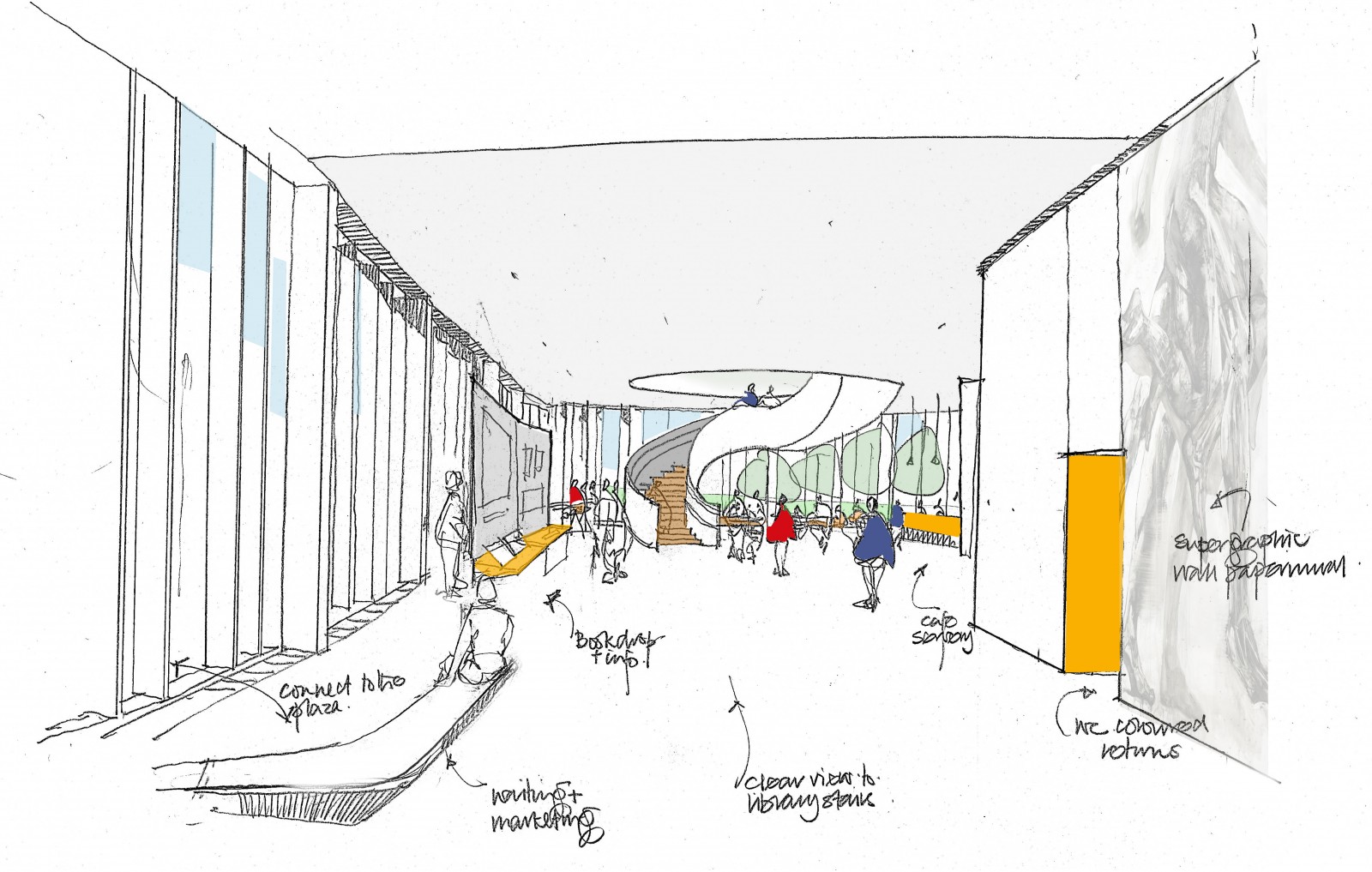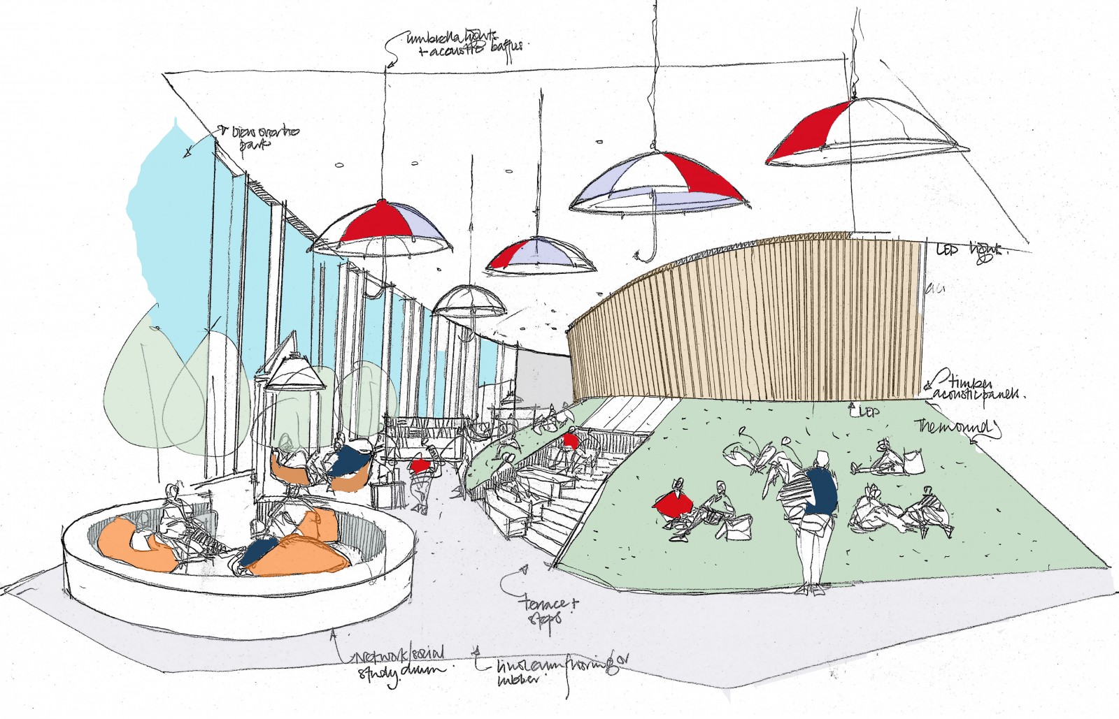 The realised design presents an innovative social hub; an integrated facility bringing together a range of Council community services, including leisure, library and children’s centre, under one roof.  The result is a vibrant, welcoming and inclusive building, embedded within the local community, enhancing and connecting with the adjacent park and wider site, and delivering long-term economic, environmental and social sustainability.